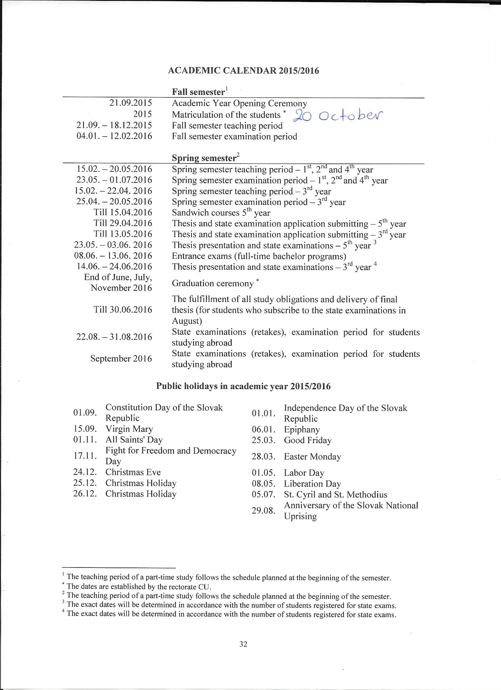 Above is the academic calendar of Medicine/ Dentistry of Comenius Unv.