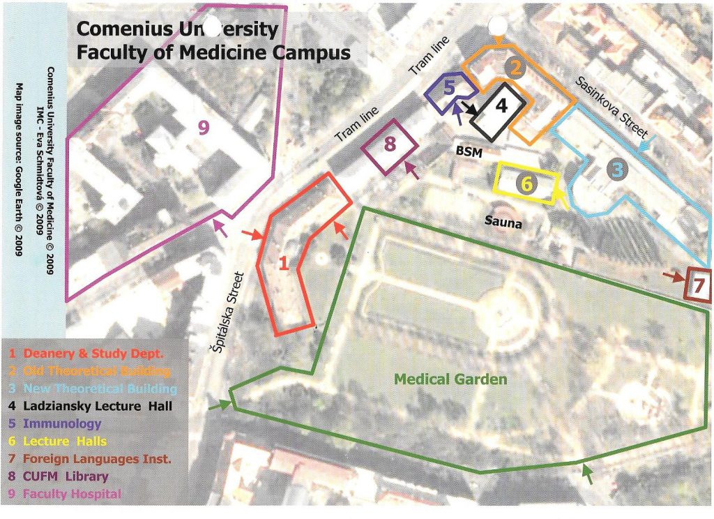 1. DEANERY & STUDY DEPARTMENT (ΠΡΥΤΑΝΕΙΑ ΚΑΙ ΤΜΗΜΑ ΣΠΟΥΔΩΝ) 2. OLD THEORETICAL BUILDING 3. NEW THEORETICAL BUILDING 4. LADZIANSKY LECTURE HALL (ΑΙΘΟΥΣΑ ΔΙΑΛΕΞΕΩΝ – ΔΙΔΑΣΚΑΛΙΑΣ) 5. IMMUNOLOGY (ΑΝΟΣΟΛΟΓΙΑ) 6. LECTURE HALLS (ΑΙΘΟΥΣES ΔΙΑΛΕΞΕΩΝ – ΔΙΔΑΣΚΑΛΙΑΣ) 7. FOREIGN LANGUAGE INSTITUTE (ΙΔΡΥΜΑ ΞΕΝΩΝ ΓΛΩΣΣΩΝ) 8. CUFM LIBRARY (ΒΙΒΛΙΟΘΗΚΗ ΙΑΤΡΙΚΗΣ ΣΧΟΛΗΣ) 9. FACULTY HOSPITAL (ΠΑΝΕΠΙΣΤΗΜΙΟ ΝΟΣΟΚΟΜΕΙΟ )
